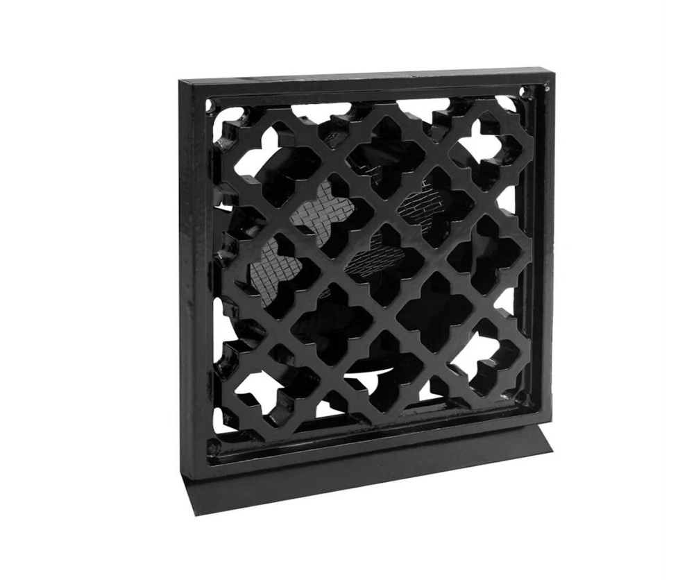 Het decoratieve patroon geeft uw gevel direct een authentieke uitstraling, ideaal voor jaren ’30 woningen, klassieke gevels of renovatieprojecten. De vierkante vorm (met een aansluitbus van Ø125mm) laat zich strak integreren in het metselwerk. Aan de achterzijde is het rooster voorzien van stevig muggengaas, zodat ongedierte geen kans krijgt. Eenvoudig te monteren met de meegeleverde RVS schroeven.